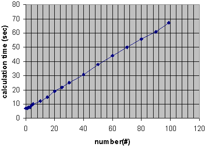 This procedure involves no information caching and its performance is described in the table below. Generally, it's a straight line with slope of .6.