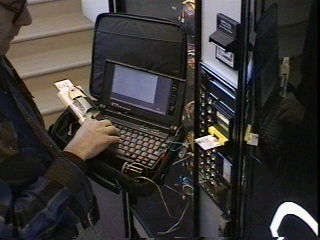 inserted in the vending machine. The notebook computer runs OpenBSD with