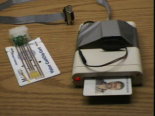 The device on the left is a standard smart card (in this case, UM Cash Chip card)